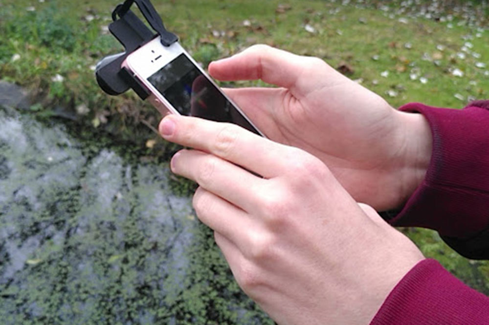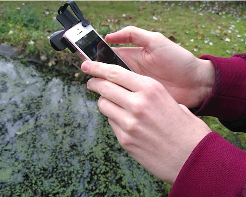 Attach iSPEX 2 to any smartphone and gather data on spectropolarimetry by taking a picture of the water, the sky and a grey card for calibration. Since it is attached directly to your phone, iSPEX 2 does not need to enter the water and can be used from the shore or a boat. Data on the intensity and polarisation of light at different wavelengths (colours) is collected and analysed to provide information on the concentrations of certain materials in the water such as: chlorophyll-a, dissolved organic matter, and particulate matter.