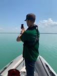 By citizen scientists on a smartphone, from the shore or a boat